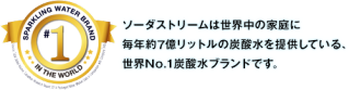 ソーダストリームは世界中の家庭に毎年約7億リットルの炭酸水を提供している、世界No.1炭酸水ブランドです。